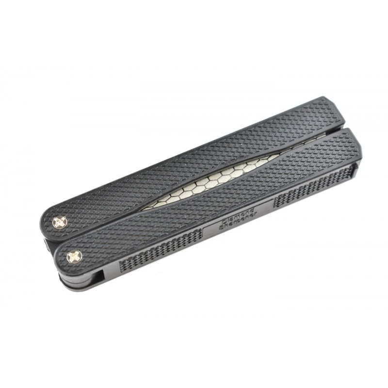 Idéal pour aiguiser vos couteaux en extérieur, cet affûteur est conçu en diamant, un matériau à la durabilité élevée. Vous aurez la possibilité de travailler différemment vos lames grâce à la pierre double face. Sur l’une d’elles, le 400 grains pour un aiguisage grossier et sur l’autre, 600 grains pour un aiguisage fin. La surface est alvéolée afin d’éviter l’accumulation du métal et ainsi accroître son efficacité !