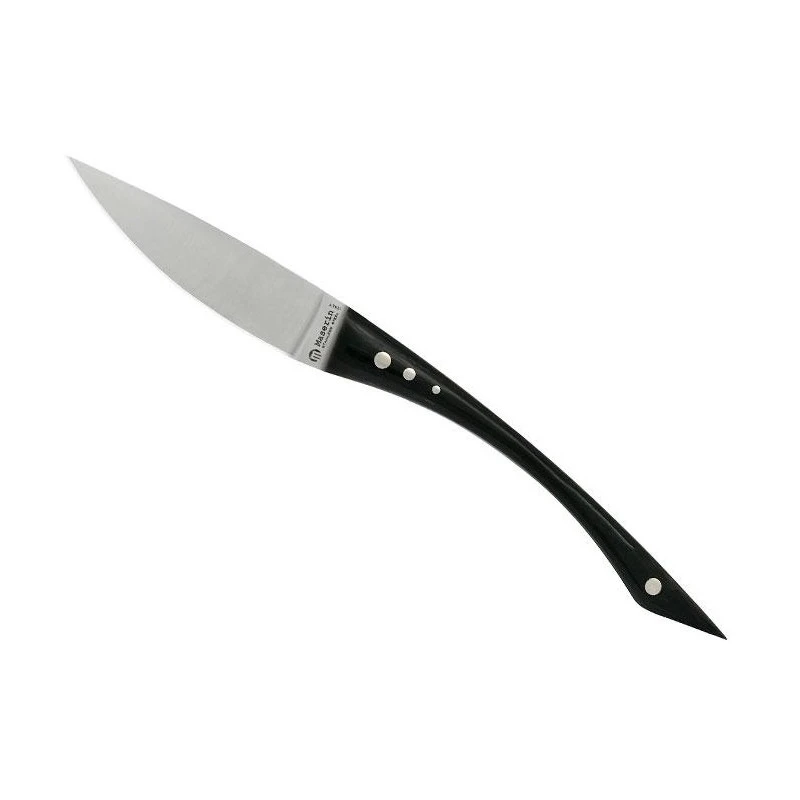 Coupez les viandes et steaks à table avec élégance grâce à ces deux couteaux Alice ! Issus de la marque italienne Maserin, ils arborent une forme contemporaine ultra stylée, avec notamment des manches en pakka noir courbés et affinés au niveau du centre. La prise en main est confortable, et c’est un véritable plaisir des les utiliser au quotidien. L’avantage du pakka réside principalement dans sa résistance à l’humidité et à la chaleur.
