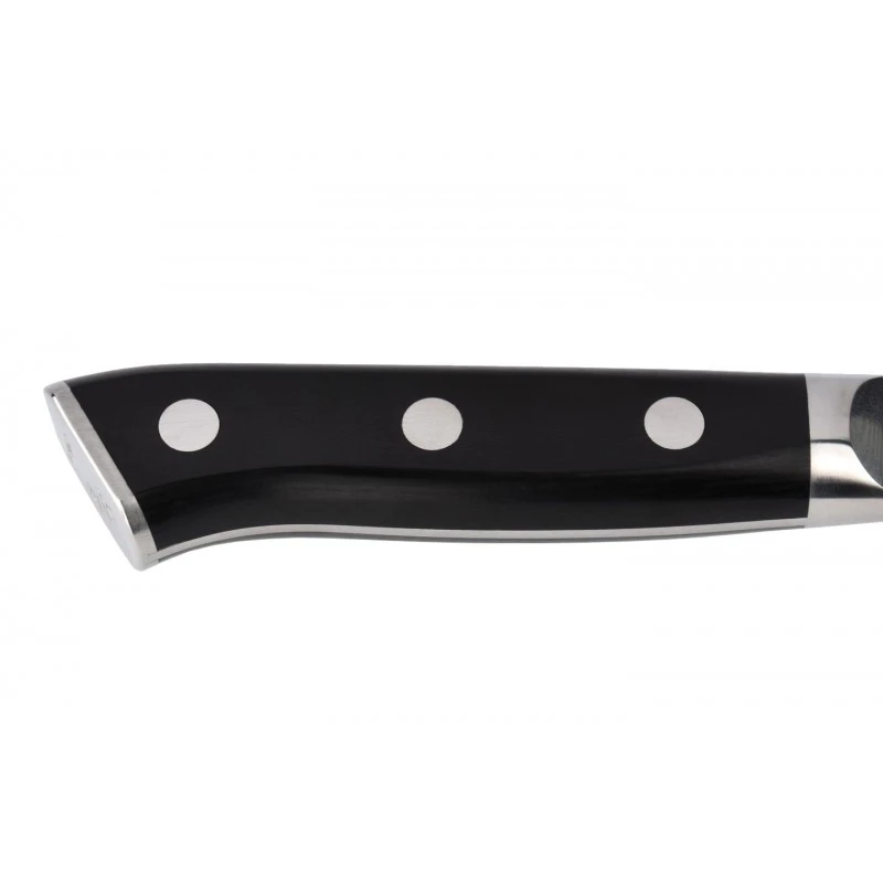 Ce couteau Japonais Mcusta Gyuto Classic Damas va beaucoup plaire en raison de son manche noir en bois Pakka et acier inoxydable. Il est très esthétique, avec de beaux rivets en inox ainsi qu’une splendide finition miroir. En plus d’avoir de l’allure, du style, la poignée offre aussi une excellente ergonomie, avec à la clef une prise en main très confortable même lors des utilisations prolongées. L’assurance pour le chef de cuisine d’exécuter des gestes minutieux et techniques sans se fatiguer ! Fabrication 100% Japonaise.