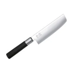 Si vous appréciez les plats à base de légumes, alors le couteau Nakiri est celui qu’il vous faut avoir impérativement dans votre cuisine. C’est un couteau Japonais, signé Kai, série Wasabi Black, qui possède une lame de 165mm, dont la forme est spécialement conçue pour la découpe ou l’éminçage des légumes. Une grande et large lame, qui est fabriquée en acier inoxydable poli (dureté 58 +/- 1 Rockwell), et décorée par le logo Wasabi. Vous pouvez l’agrémenter de vos textes au niveau des deux faces (voir bouton ajouter une gravure).