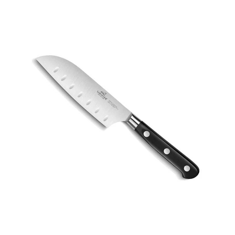 Faisant partie de la série Idéal Rivets Inox de la marque française Sabatier, ce couteau Santoku est un must-have pour celles et ceux qui souhaitent un couteau polyvalent dans leur cuisine. Il est vrai que le Santoku permet de trancher efficacement tous les types d’aliments : viandes, poissons, fruits & légumes …