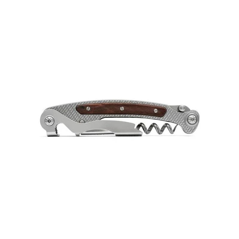 Adapté aussi bien pour un usage professionnel que quotidien, ce couteau est équipé de 3 pièces, à savoir une lame dentelée rétractable coupe-capsule, un double levier ainsi qu’un tire-bouchon.