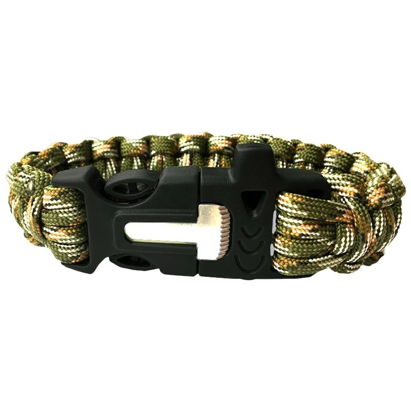 Ce bracelet de survie JKR2599 est notamment composé d’une paracorde camouflage pouvant s’avérer être bien utile lors des activités Outdoor. La forme bracelet fait que vous aurez toujours une paracorde à disposition lors des déplacements, sans vous en rendre compte, permettant de fabriquer par exemple une corde de secours et biens d’autres encore. Pratique, le bracelet intègre aussi un allume-feu et un sifflet d’urgence.