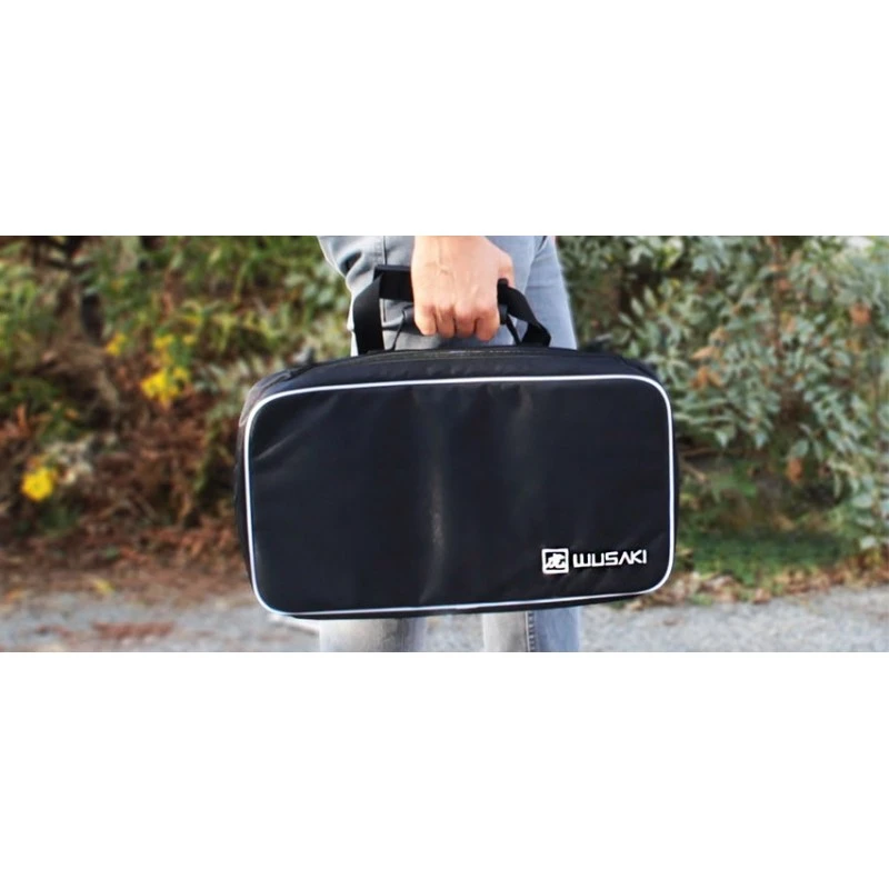 Étudiant en cuisine, hôtellerie ou professionnel de la gastronomie, emportez votre matériel de cuisine d’un endroit à un autre grâce à cette mallette de cuisine vide Wusaki. En polyester, possédant deux plateaux en polymère, elle combine épaisseur et légèreté. De ce fait, le transport est agréable et les accessoires qui y sont enfermés le restent. Cette mallette se porte au choix en bandoulière ou par la poignée. Elle s’ouvre et se ferme par fermeture éclair. Simple, rapide, efficace. L’intérieur, comparable à un classeur, dispose de 4 faces sur laquelle sont disséminées en tout 21 places pour couteaux de cuisine et une 1 poche de rangement pour carnet, tablier ou une paire de gants. Boutons-pression, rabat et scratchs maintiennent vos ustensiles immobiles et éloignés les uns des autres. Vous les retrouverez donc dans le même état que vous les y avez mis. Longueur de lame supportée : 28cm.