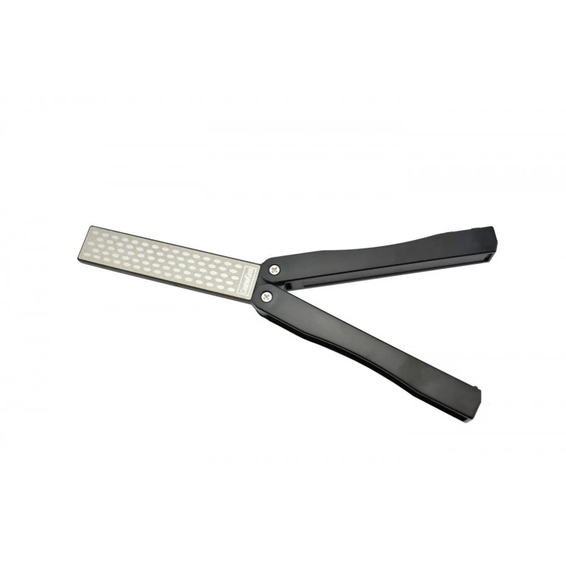 L’affûteur diamant SP51 de la marque Max Knives adopte une conception inspirée du couteau papillon, avec une structure pliante. Ce dispositif polyvalent présente sur l’une de ses faces un grain fin de 600, idéal pour les finitions, tandis que l’autre face possède un grain plus épais de 400, conçu pour les travaux d’ébauche. En position ouverte, l’affûteur s’étend sur une longueur de 225mm, mais se rétracte à 125mm lorsqu’il est fermé. La section dédiée à l’affûtage a des dimensions de 100 X 20mm.