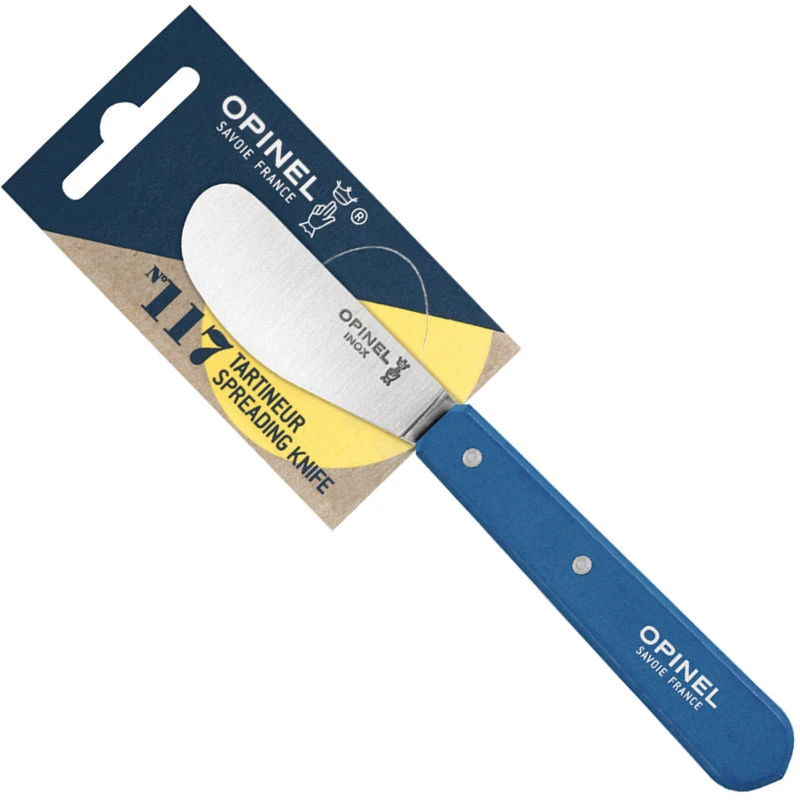 Quel bonheur et quel régal d’étaler généreusement des coulées de pâte à tartiner chocolatée et onctueuse sur du pain frais. Un plaisir simple et communicatif à s’offrir avec ce tartineur Opinel n°117. Mais il étale bien d’autres aliments : beurre, confiture, rillettes, pâté, foie gras, tapenade… grâce à sa lame courte à la rondeur proéminente. Long de presque 10 cm, le manche permet de gratter au fond du pot.